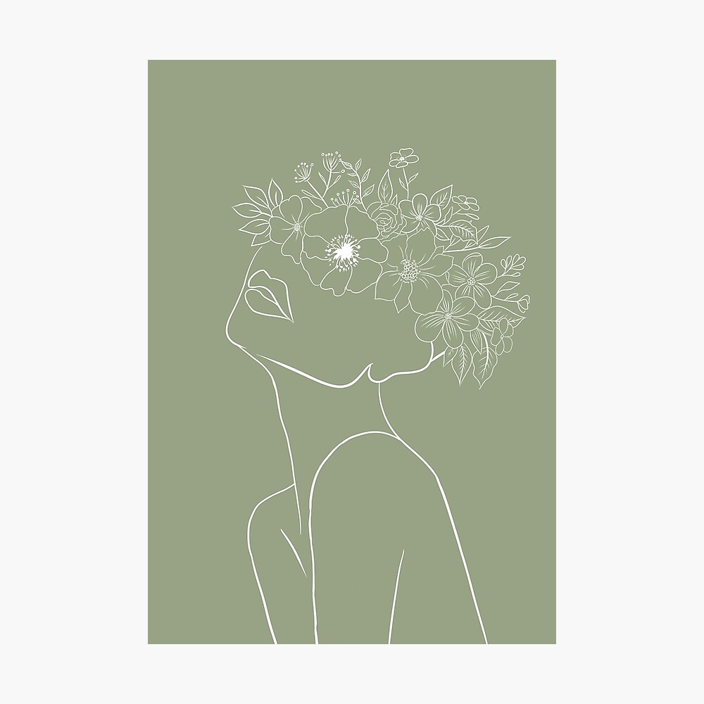 Sage Flower Girl Line Art Poster For Sale By Biblioartistry Redbubble